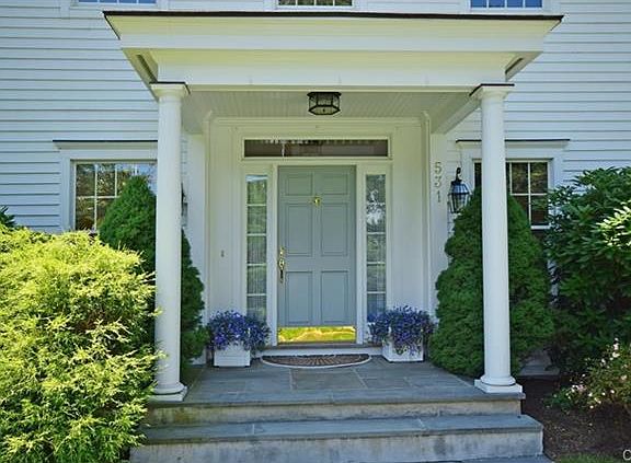Down a long drive and on a serene property near the Darien border, this classic CT Colonial offers 3700 SF of finished space & has everything you need. This 4 BR home is flooded with sunlight & features high ceilings, 2 fireplaces & hardwood floors throughout. Entry foyer has double height ceilings & is flanked by LR w fireplace & office w French doors. The DR is adjacent to the EIK with island & FR creating an open feel & includes a fireplace. Kit and FR overlook terrace & gorgeous fenced flat yard. Excellent flow for entertaining inside & out. The master suite boasts a huge bath and large closets. 3 Addl huge BRs. Finished basement w TV room, lg playroom & gym. Loads of storage throughout, 2 car attached garage. Wonderful town beaches.