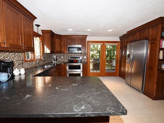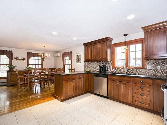 Sparkling Gambrel Cape with modern updates. Newer kitchen with honed granite counter tops/designer tile back-splash, and stainless steel appliances. Perfect for entertaining with double ovens, and upgraded custom cabinets throughout. Kitchen slider leads out to large, recently added low maintenance Trex composite deck. Sun drenched family room with fireplace, hardwood floor perfect for snuggling up with a good book. Enjoy a full, level backyard with perennial beds and attractive professional landscaping and custom stonewalls. Plenty of room for 4 legged friends, swing sets and backyard gatherings. All of this and just moments from schools, 1.5 miles to Rt. 3, Welcome Home!