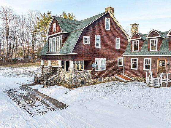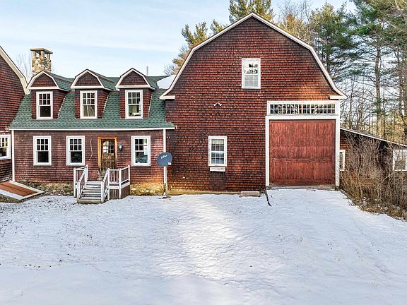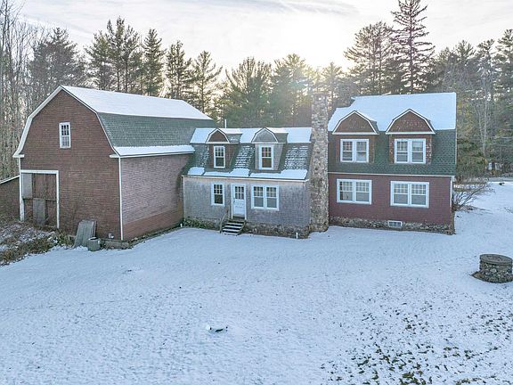 531 Governor Wentworth Hwy, Melvin Village. Situated in the middle of 2.5 acres of fields and stone walls with mountain views boasting a fabulous post and beam barn, late 1800's 6 bedroom home with 2 stone fireplaces, covered and enclosed porches and so much more. Renovations were started in the main house but never completed. If you are interested in cars, boats, restoration, antiques shop, home business, a venue...this is the place!
