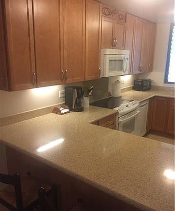 Easy access to this fully furnished, 2 bedroom, 2 bathroom, ground floor unit. Includes a newly renovated kitchen and both bathes. Calming view of gardens and west pool area. Available now through January 2019. NO PETS, NO SMOKING. Contact Diane Sagucio (R-17711) at (808)295-7854 or Diane@SouthShoreRealtyHI.com for additional information and showings.
