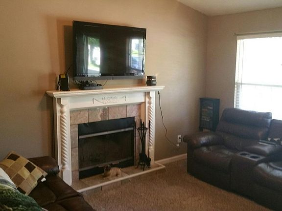 Really nice a one story home with full length front porch. 3 Bedrooms, 2 Full Baths, nice sized Master Bedroom with good storage space. Owner recently painted and installed carpet. The family room and kitchen and have a vaulted ceiling. Kitchen has a island and extra cabinets for plenty of storage and counter space. Almost new HVAC and Water heater in storage area off main bathroom. Nicely fenced backyard with wooden deck and large storage building that is about 1 year old. Double car off street parking for convenience. 5 mins from the Interstate. This home is priced to sell! Act Fast!