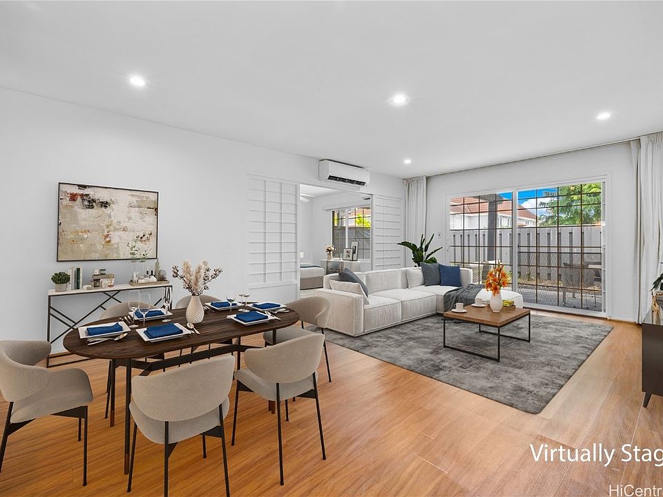Single level 2-bedroom, 2-bath, 2-car enclosed garage residence in Kukilakila, a waterfront community of Enchanted Lake in Kailua. A secured front entry porch and large covered patio with flagstone tile allow you to enjoy the outdoor weather of Windward Oahu. The kitchen showcases granite countertops and stainless steel appliances with ample cabinet space and storage. Features luxury vinyl flooring, a newly remodeled primary bath shower, fresh paint, and upgraded recessed lighting. The ceiling fans and split AC system will keep you cool on those warmer summer days. Down the walkway from the back gate of your courtyard into the neighboring cluster you will find the recreation area featuring a heated pool, clubhouse, shower and gym. Enjoy leisurely strolls through park-like grounds, and the lakefront walking path. Minutes to Kailua Town shops and restaurants and an easy drive to the sands of idyllic Kailua Beach.