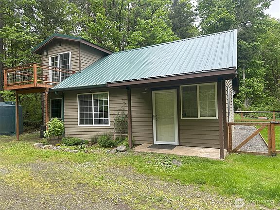 Your cabin in the woods awaits! This 2 bed, 3/4 bath home is tucked away within your own private forest! The home has been loving care for with numerous upgrades from laminate floors to the lifetime metal roof. Sunshine lights up the kitchen with custom built cabinets, quartz counter tops and stainless steel appliances. Private master bedroom upstairs with deck overlooking the property. Remodel bathroom with stacking W/D. Covered back porch with fenced yard. Enjoy the solitude or entertain your friends as you hangout by the campfire or catch frogs in the pond! Mature fruit trees with room for a gardens or garage. Upgraded water catchment system and septic system. County living but close to schools and services! Come have a look!