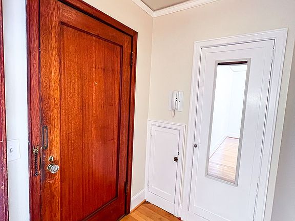 This apartment offers the charm of hardwood floors and plenty of storage, including a huge walk-in closet, coat closet, and built-in storage spaces. The dining area complements the full-sized kitchen with a large linen closet nearby. The bathroom boasts a vintage marble-tiled bathtub, and radiant heating ensures your comfort this winter. For added convenience, there's a laundry facility in the building, and this apartment is cat-friendly, making it a perfect home for feline companions!