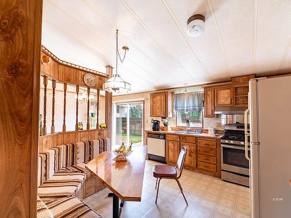 This delightful home offers a comfortable and inviting atmosphere, perfect for creating lasting memories with family and friends Good sized living room that is an open plan with dining room that features access to the backyard where there is a wood deck. The kitchen has a gas stove and a bench style sitting area and the fridge to stay. The main bedroom has an ensuite bathroom with a garden tub, dual sinks and separate shower. Two additional bedrooms are perfect for family members, guests, or versatile use as a home office or hobby space. New roof installed and exterior paint summer 2023. Central heating and air conditioning ensure year-round comfort, regardless of the season. Attached garage has storage and there is a sprinkler system. Washer and dryer to stay with no warranty