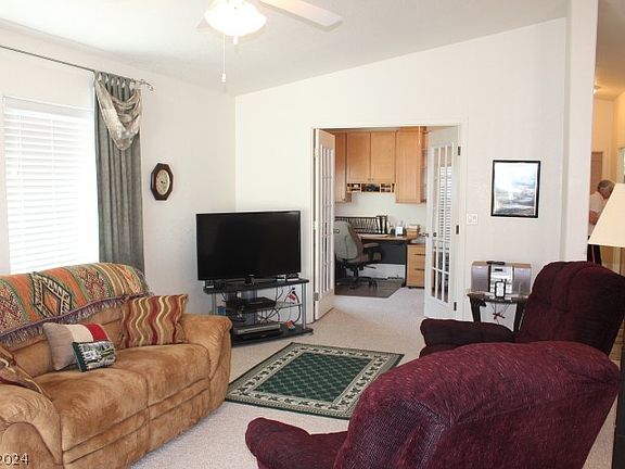 BEAUTIFUL IN LOVELY 55+ GATED DESERT GREENS COMMUNITY // ++ NO LAND LEASE++YOU WILL OWN YOUR LOT! Located in the heart of Pahrump, immaculate 2Bed/2 Bath PLUS the DEN/Office you've been looking for. Lots of extra storage. Open Kitchen/Dining/Living area with slider out to the covered deck to enjoy mountain views. A few steps away you'll find the Gorgeous Desert Greens Clubhouse offers many great activities to enjoy including Golf Course/Pool/Spa/Games and Get-togethers, Sep. RV Parking & so much more!