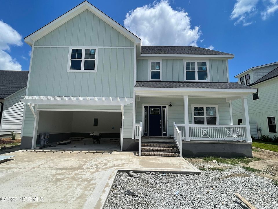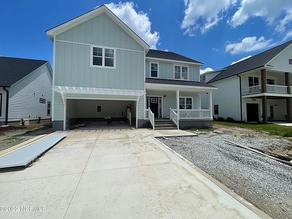 Welcome home to the newly constructed Bellport floor plan by Holbrook Homes, located in the coastal community of Summerhouse on Everett Bay. Featuring 3222 square feet of living space, this remarkable home is sure to be at the top of your list. Featuring large, spacious rooms on both floors, the main living area is perfectly suited to entertain. The living room features high ceilings, a gas fireplace with slate surround, a floating mantle, and an eye-catching shiplap accent. Flowing into the kitchen, you'll find white custom kitchen cabinets, stunning fantasy brown granite, white tile backsplash, stainless steel appliances, a pantry, and more! The main floor also features a formal dining room decorated with wainscotting and coffered ceiling, and a powder room. As you make your way to the second floor, you'll find the owner's suite with a beautifully tiled walk-in shower, three additional bedrooms, two of which feature a jack-n-jill bathroom, a laundry room, and an additional guest bathroom. Throughout the home, you'll find finishes such as crown molding, LVT and tile flooring, recessed lighting, and so many more textural finishes, for the finest coastal living. If you enjoy the outdoors, you're sure to enjoy countless moments on the screened-in back porch, along with all the various amenities offered within the community. Summerhouse on Everett Bay features unsurpassed community amenities, including an exquisite clubhouse, resort-style pool, community gym, fire pits, playground, tennis courts, walking trails, pavilions, boat storage, boat launch, and day docks with ICWW access. This is truly an opportunity to own your own piece of coastal paradise! Schedule your tour today!