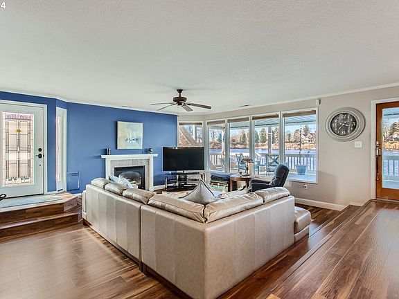 Live large on the river! With one of the most coveted views on the channel, enjoy a parade of boats, wildlife, and the nesting osprey. This home enjoys an expansive sunken living room and fireplace, with a wall of windows to enjoy the views. Updated kitchen offers stainless appliances, Corian countertops, and full tile backsplash. The living spaces move outside, where you can enjoy the river lifestyle year round with a huge covered deck! 2 generous bedrooms, and a third bedroom with a built in desk, ensure there's room for everyone. Your guests will love the expansive and luxurious main bath. Let's talk storage, this home offers a huge attic space to store all your things. Recent float work resultied in a 4 rating, making it financeable. With one dedicated parking spot, and tons of guest space, you will be the center of your world's summertime fun!