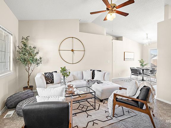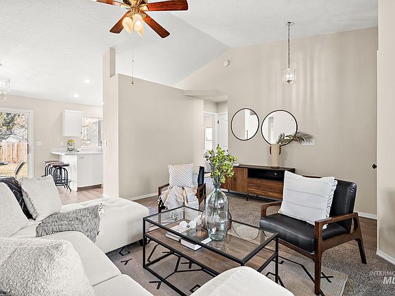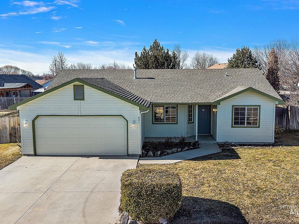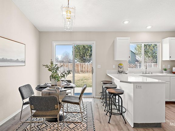 Welcome Home to Kuna, Idaho! This like-new 3-bed, 2-bath single-level home features NEW carpet, NEW paint, and NEW floors, along with updated fixtures throughout. Located in the desirable Discovery Creek neighborhood, this home offers access to two community parks, Indian Creek, and supreme location. The quiet, secluded setting, nestled against Indian Creek with a private park for residents, provides the perfect backdrop for peaceful living. Inside, enjoy a well-designed split-bedroom floor plan with the primary suite on one side and two additional bedrooms on the other. The spacious living room has vaulted ceilings and flows into the dining area with a glass slider that opens to the patio. The large, fully fenced yard offers plenty of room for a garden, pets. Ceiling fans are throughout. Conveniently located off Ten Mile Rd., this home is just minutes from schools, shopping, and downtown Kuna.