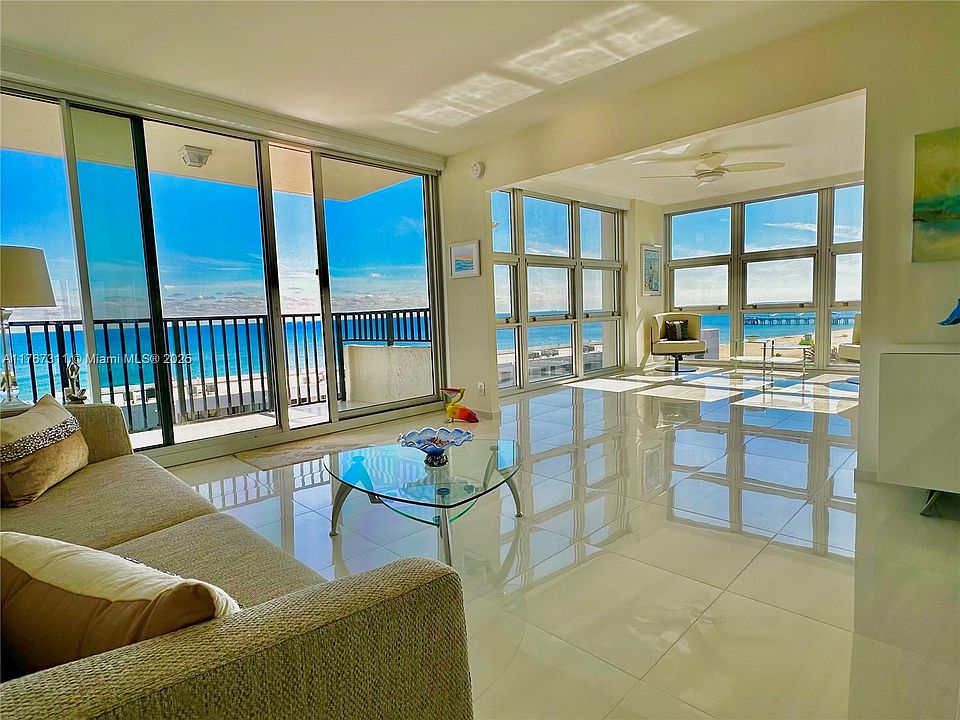 SWEEPING PANORAMIC OCEAN & COASTAL VIEWS BLENDING WITH A SOPHISTICATED REMODELED INTERIOR. WELCOME TO YOUR NEW OCEAN RETREAT! RARELY AVAILABLE 2/2 SE CORNER UNIT. DIRECT OCEAN & BEACH VIEWS FROM EVERY ROOM W/ FLOOR TO CEILING IMPACT WINDOWS THROUGHOUT. CERAMIC TILE FLOORING, CUSTOM ITALIAN DESIGN EAT-IN KITCHEN W/ QUARTZ COUNTERTOPS, ELECTRIC SOLAR SHADES. OPEN FLOOR PLAN W/ SECOND BEDROOM OPEN TO MAIN LIVING AREA, MAKES A GREAT DEN OR HOME OFFICE/GUEST AREA W/ THE SECOND BATH & SECOND WALK IN CLOSET. FOYER W/ LARGE COAT CLOSET, LARGE WALL SAFE & 1 GARAGE SPACE. TENNIS/PICKLE BALL COURT, 2 POOLS, OUTDOOR KITCHENS W/ SUNSET VIEWS, FITNESS CENTER & STORAGE, 24 HR SECURITY. RECERTIFICATION ALMOST COMPLETE. PRIVATE BEACH ACCESS. WALKING DISTANCE TO THE POMPANO BEACH PIER, RESTAURANT & SHOPS