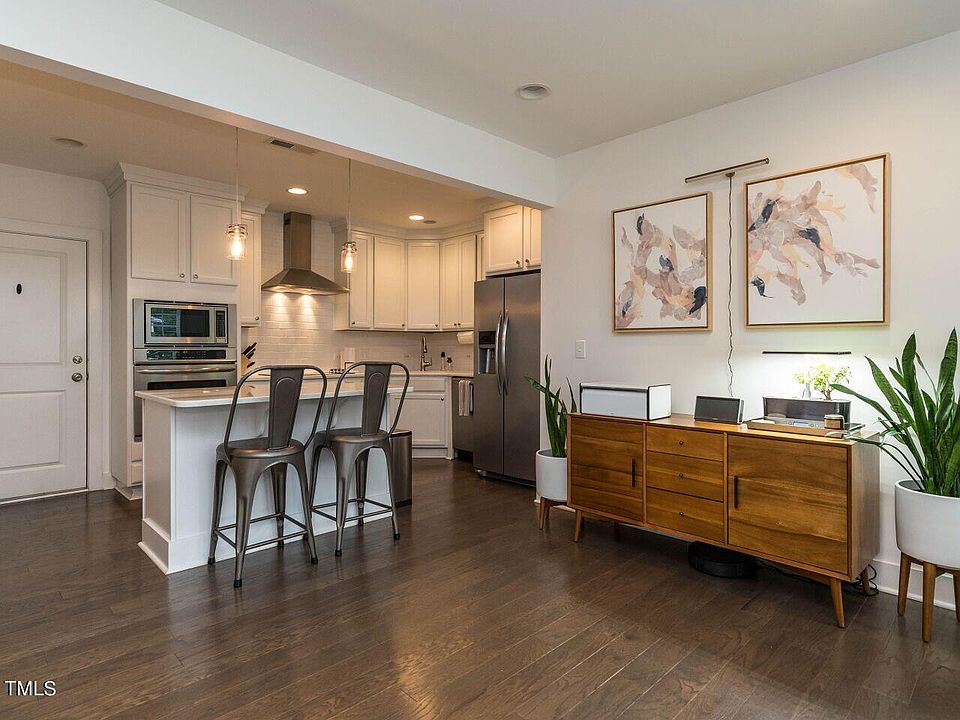 If you want to live in one of the most desirable locations in Raleigh, here is your chance. Located on N. Person Street, you can live just blocks from some of the best locally owned restaurants, bars and boutiques in town. This first level condo has been well maintained by the original owners. The first floor features access from the street level and has an open floor plan with flexible space for either dining or living room. The light and airy kitchen features stainless steel appliances, white cabinets, quartz countertops and a pantry. The second floor has a bonus room, perfect for living room or office and has access to outdoor deck that overlooks the shared outdoor green space. You will also find second bedroom, bathroom, the laundry closet and a custom built bookshelf in the hallway, great for extra books and games. The primary suite has 2 walk in closets with custom shelving, a private bathroom featuring dual vanities, and private toilet. The one car attached garage is a huge commodity in downtown! There are also shared parking spaces near the unit, as well as parking on nearby streets.