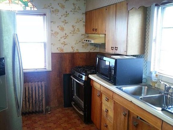 CHECK THAT NEW PRICE ! This property needs updating, but solid structure. Large kitchen with all major appliances, also includes freezer and dehumidifier in basement. Upper level boasts hallway linen closet and heavy-duty pulldown attic stairway for extra storage. Glass block basement windows. 10 X 12 front porch, detached garage, fenced rear yard. Make it your new home today !