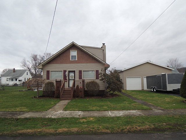 Great Southside find! Huge double lot, newer roof and siding, replacement windows and central air. Kitchen has newer applainces and breakfast room and double doors to a covered rear deck. Nicely finished family room on lower level. New Huge detached garage just a few years old. Pellet stove in living room.