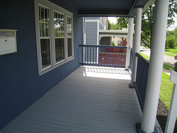 Think about relaxing on this lovely porch and get set to view this move in ready home. Lovely brick fireplace in a large living room with French doors leading to the dining room and bright kitchen. There is also a 13 X 10 multi- purpose room off the kitchen! Upstairs you'll find 3 nice sized bedrooms and a full bath. Everything painted fresh Except the original beautiful trim. Plus new carpeting through-out! And What a Great PRICE ! Extra large double garage with off street access. Nicely landscaped yard and deck with wooden privacy fence. Full basement for all your storage needs. Come and see today before it's gone.