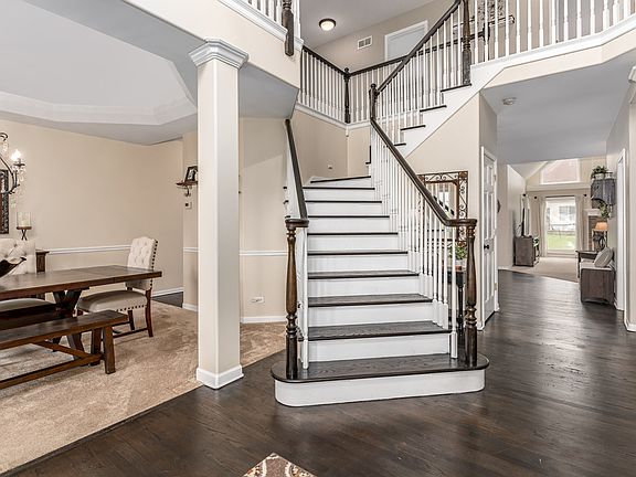 Don't overpay to build on a lesser quality lot, come see this beautifully updated fresh modern gem in highly sought after Moose Lake Estates, tucked away from road noise and fronts acres of open space and lake, this home features a relaxed flowing floorplan and tandem 3 car garage accommodates storage needs with higher quality curb appeal, the spacious covered front porch faces South towards the open space & lake offering unobstructed relaxing views, inside a two story vaulted foyer is highlighted by a turned staircase flanked with a triple box bay window front living room and formal dining room, a rear vaulted family room with fireplace and skylights overlooks the large rear yard, the full eat in kitchen boasts 42" upper cabinetry-large pantry-eat at bar-granite counters-recessed lighting-stainless appliances-tile & granite backsplach, there is an updated first floor powder room, a first floor French door study which is currently set up as a spa room, plank flooring in the first floor laundry/mud room with cabinetry and sink, upstairs is a huge 11x22 functional loft space with floor electric, oversized 18x20 private master suite with work area and huge 10x19 walk in closet-tray ceiling-spa bath featuring his & hers separate adult height vanities/walk in shower for two/whirlpool tub, bedrooms 2-3-4 are all well sized with walk in closets, this home features rounded drywall corners, architectural grade roof was replaced 2018, new central air installed 2021, Moose Lake Estates is a quiet manicured well planned development tucked away just minutes from full I-88 access-multiple Metra stations-Randall Road corridor with plentiful restaurants & shopping.