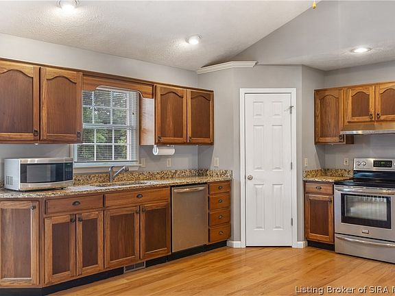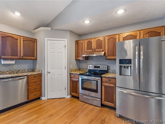Spacious, brick ranch in desirable neighborhood! Home offers large eat-in kitchen, spacious family room, split bedrooms. Kitchen has a walk-in pantry and stainless steel appliances remain. Need space? The lower level has a nice sized family room, full bath, craft area and oversized 2 car garage. The covered porch and back deck allows enjoyment or relaxing outside. Located only minutes from downtown Corydon, schools, shopping and dining.