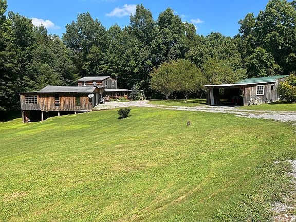 1 1/2 story nestled among the trees. Covered porches. Super garden spot. Private. 10 minutes to Summersville Lake and 15 minutes to the New River Gorge.This home features a 2 car attached garage with workshop, wood heat stove (fisher), Buck, propane fireplace and 3 propane heaters. One large with blower. Small cottage on property would make for a great rental. Needs to be finished. Mature timber.