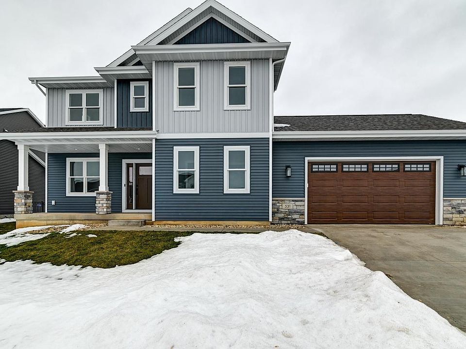 Sold Comp. Stunning 4-bed, 2.5-bath home in Kettle Creek North. Chef's dream kitchen with Quartz Island, SS appliances, gas range, walk-in pantry, and wood floors. Gas fireplace, metal spindle staircase, and flex room add character. Mudroom with cubbies near laundry. Master bedroom boasts tray ceiling, dual walk-ins, and spa-like en-suite. Three additional bedrooms and second bath with double vanity. Unfinished lower level with potential for Rec Room, bath, and bedroom. Professionally landscaped. Near Epic, Hwy M & 18/151, and Country View Elementary. Smart features include thermostat, doorbell, WiFi garage door, and electric car charger.