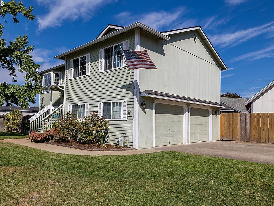 Beautiful home offers laminate flooring throughout, bay windows, vaulted ceilings, great room floor plan, kitchen w/granite counters & fabulous separation of space. Huge primary suite w/a private bathroom, amazing walk-in closet & slider leading to a covered patio. The fenced backyard is an oasis, w/a large, covered deck, garden beds, covered patio, hot tub & a new 2 room 20x10 shop w/its own electrical panel. Sprinklers in the front & back. Newer roof. MOVE IN READY!