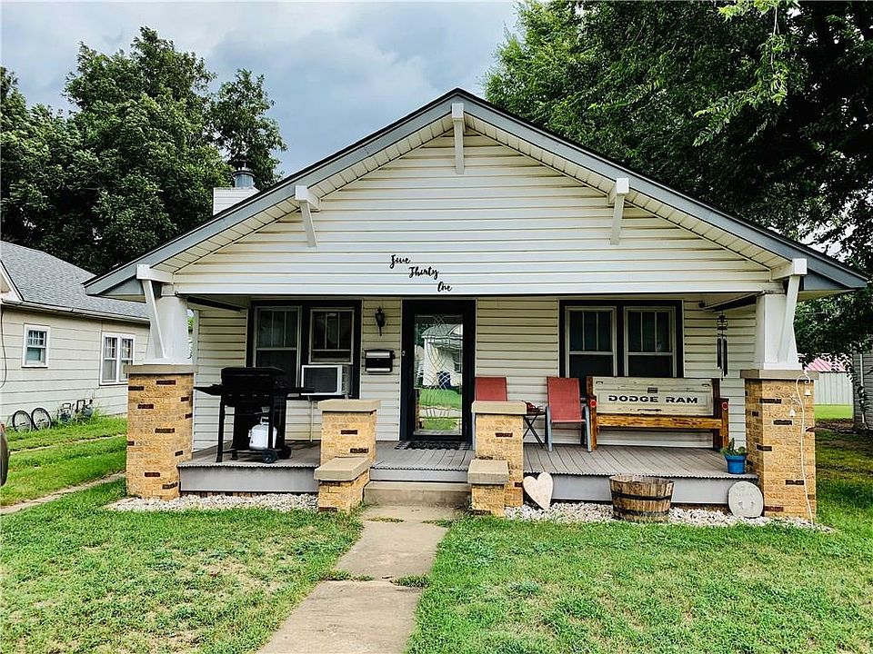 TRADITION SPEAKS OUT IN THIS CHARMING BUNGALOW. BEAUTIFUL REFURBISHED HARD-WOOD FLOORS, OPEN LIVING AND DINING. HOME BOASTS OF NEW PAINT, TEXTURE, UPDATED BATH, LARGE BEDROOMS, KITCHEN HAS LOTS OF CABINETS, PANTRY AND GAS STOVE. PERFECT UTILITY ROOM AND NICE SIZE BASEMENT FOR YOUR STORM SHELTER. DETACHED GARAGE WITH SHOP AND CARPORT OR COVERED PATIO. YOU'LL LOVE FRONT COVERED PORCH TO VIEW SUNSETS. MAKE YOUR APPOINTMENT TO SEE.