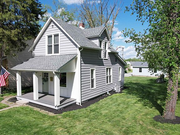 Newly renovated home awaits a family! Updates include FURNACE, CENTRAL AIR, WATER HEATER, WINDOWS, DOORS, VINYL SIDING, ELECTRIC, PLUMBING, 200 AMP ELEC BOX, KITCHEN, BATHS & FLOORING - all within the past year. The kitchen features built-in seating, just bring a table. Appliances, including the washer & dryer, stay. The rebuilt 24x28 garage offers ample room for cars & storage. You will enjoy your time on the covered front porch, and your location is a short walk to the parks and downtown!