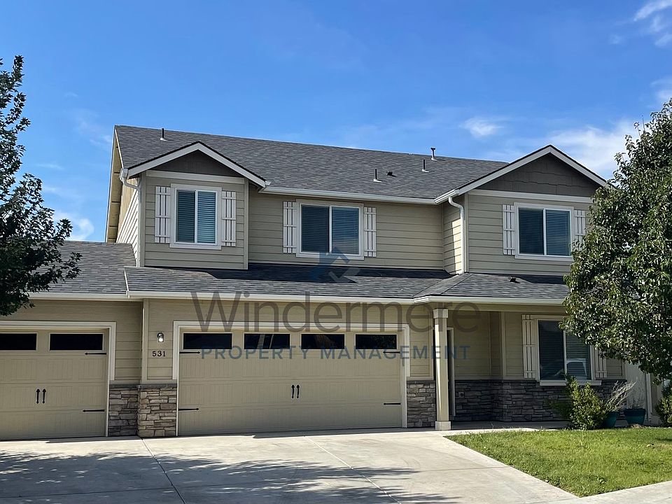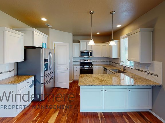 Five bed, two and a half bath, single family home built in 2018. Home features include central AC/heat, underground sprinklers, fenced back yard, second fridge in garage, 3 car garage except one door is manual, patio, storage shed, office with a closet (can be used as the 5th bedroom), large pantry, washer & dryer hookups, hard surface flooring throughout. Kitchen features granite countertops and stainless steel appliances: fridge, gas stove, microwave and dishwasher. Tenant responsible for power, gas, water, sewer and garbage. Yard care included in rent. No students. No pets. No smoking.