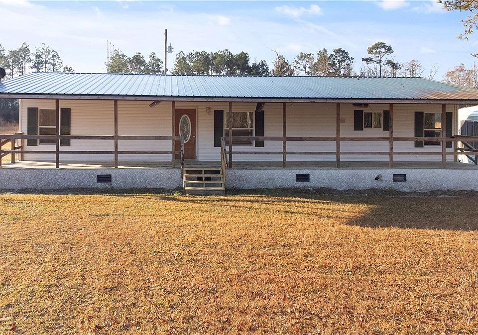 Looking for a country get-away? Welcome to 531 Satilla Church Rd! This double wide mobile home sits on 5 acres with a water front view of a pond. Sit on either your front or back covered porch and sip your coffee! Located on this property is a workshop, a converted carport, a poll barn covering and a small wooden storage shed and an enclosed semi-trailer for extra storage! Inside this 1995 model you get hardwood bedrooms and living room with tile flooring throughout the bathrooms and kitchen/dining room. The primary suite will have its own bathroom that is double vanity with a deep jet tub with a stand-alone shower also. An outside laundry room offers an extra washer/dryer hookup that is completed along with an extra bathroom that is ready for plumbing! You are not gonna want to miss this oasis get-away! Call your real estate agent today to book a showing!