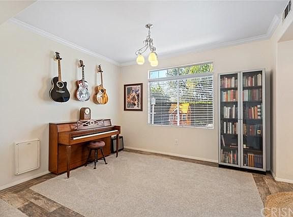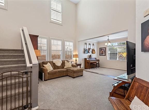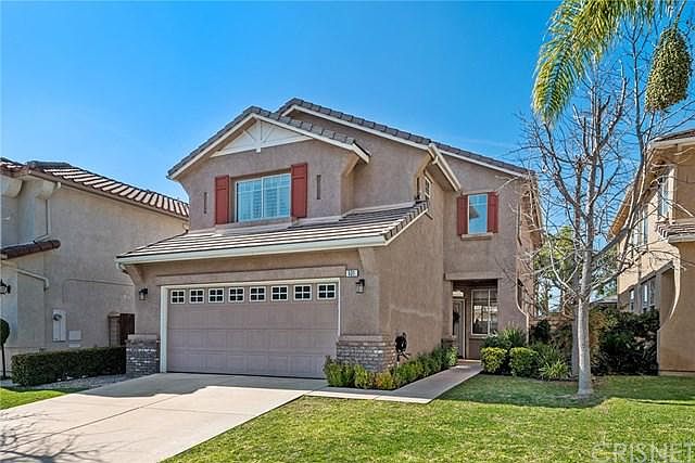 Welcome to Shadow Lane at Laurelwood Heights! This gate guarded Wood Ranch view home has over 1,900 sqft of living space and is located on a double cul-de-sac. Energy saving solar with Tesla Powerwall - all paid off! Spacious bright kitchen with stainless appliances (refrigerator), eating area, breakfast bar, all open to family room with a fireplace and a slider to the backyard. Designer plank tile flooring in kitchen and family room. Cathedral ceilings in formal living room. Powder room on the first floor. The master suite has amazing sunset views, master bath with dual sinks, soaking tub, shower, and a spacious walk in closet. Secondary bedrooms with an adjoining bath. Upstairs laundry room and includes almost new washer and dryer. Two car garage with direct access! Beautifully landscaped low maintenance backyard with patio, artificial grass, views, and privacy. Access to nearby community pool. Close to Wood Ranch Elementary, hiking trails, restaurants, and Wood Ranch Country Club.