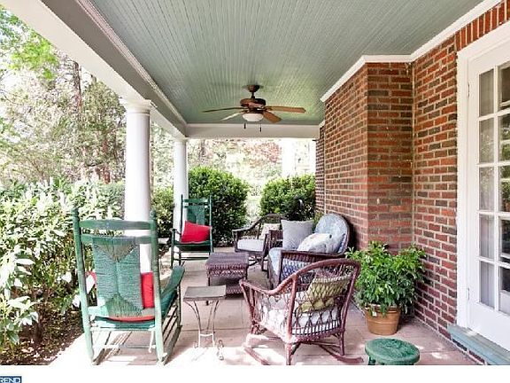 This all brick Three Story Center Hall Colonial is convenient to public transportation, shopping and hospitals. The Living Room with a marble fireplace, built-in bookshelves, leaded glass windows with french doors that lead to a covered patio. The formal Dining Room has crown molding and a slider to a covered wood deck. The kitchen has wood cabinets, gas cooking, a large pantry and built-in shelves. The 2nd floor where the Master Bedroom is plus 2 more Bedrooms with nice size closets. The third floor has two more Bedrooms and a Hall Bath. The partially finished basement can be used as a Fam Room with a toilet room and laundry. The driveway is a private road behind the house.