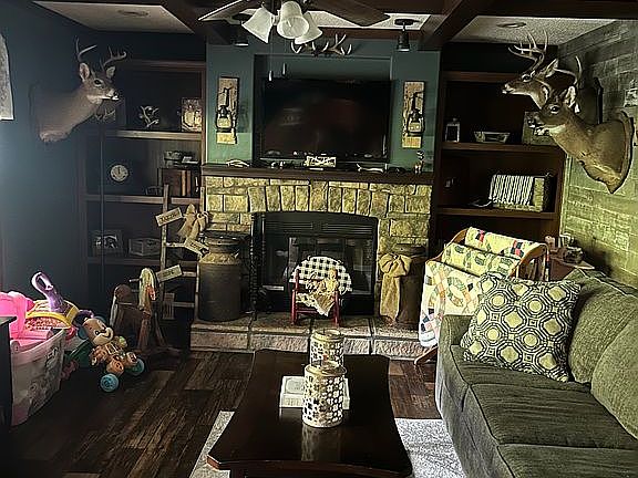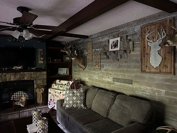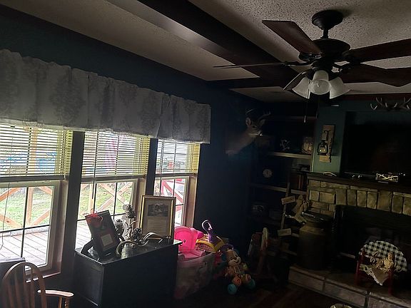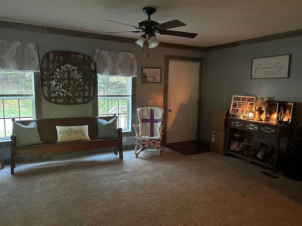 3 bed 2 bath den with fireplace and laundry room. Has a fully covered back porch that runs the length of the home. Metal roof . Huge detached metal garage, out building and two car carport, sits on approximately 0.75-1 acre lot. Plenty of parking space and literally minutes away from Tackett Creek riding trails!!