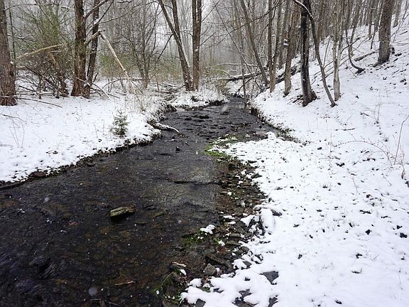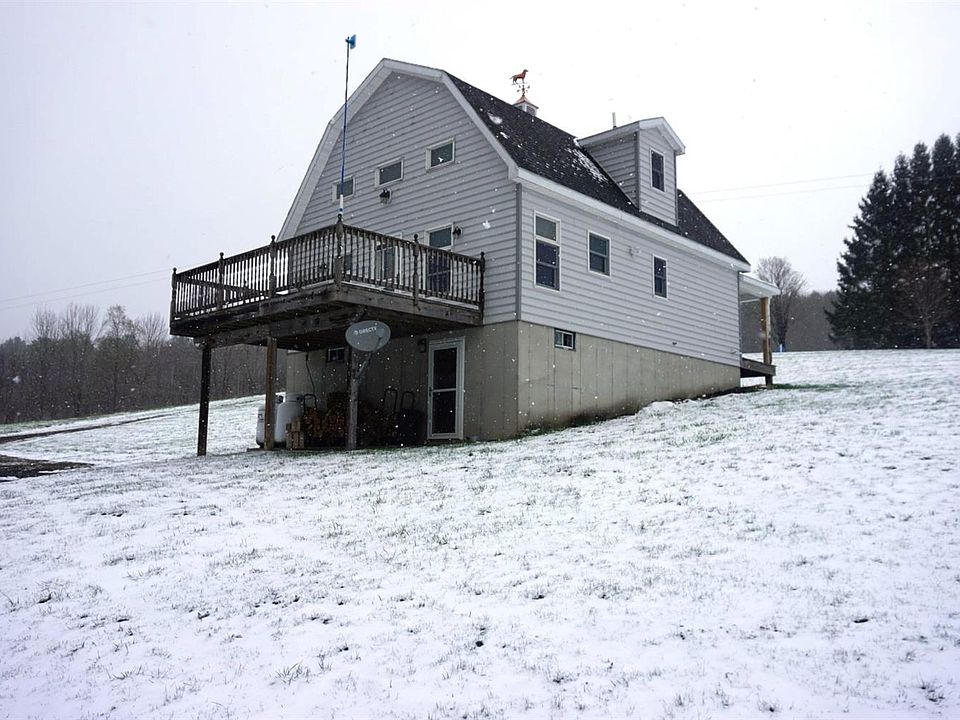 Like new condition, 2 bedroom, 1.5 bath custom home on over 25 acres. Home features beautiful hardwood floors throughout, walkout basement, front porch and back deck overlooking property. Year round stream through property. House is easily winterized. State land nearby.