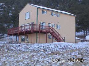 GREAT HOME FOR vacation,full-time or vacation rental. 39.55 acres mostly flat grazing land, 1/3 is on mountainside with trees. Off-grid home has generator and battery back-up. Close to 11 Mile and Spinney Reservoirs. The wrap around deck provides massive views. $229,000 No.3550