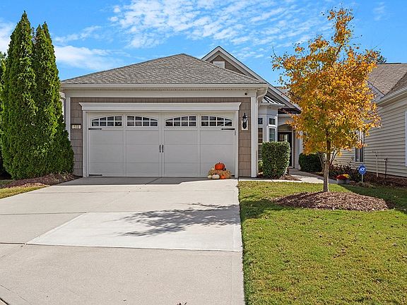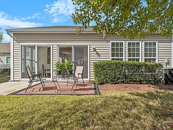 Charm, upgrades and meticulous care define this lovely Gray Myst model with serene and private back yard views. True move-in condition with gleaming hardwood floors throughout, NEW ROOF & NEW INTERIOR PAINT, granite counters, custom window treatments including shutters and Hunter Douglas blinds. Kitchen w/s.s. appliances - refrigerator 2 yrs old, built-in desk. Washer & newer dryer convey. Sunroom with sliding doors to the large patio for outdoor entertaining. Primary suite with walk-in closet, dual vanities & walk-in shower. 2 secondary bedrooms - or use 1 as an office/study/den. Easy to show -- but come see it before it is gone! Enjoy world-class amenities in this 55+ active adult community.