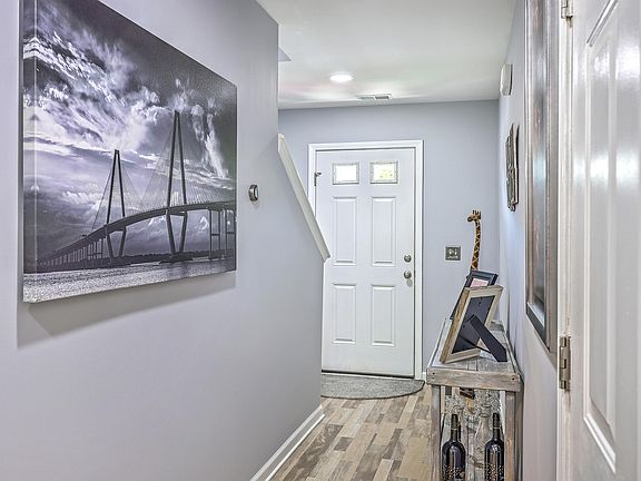 Welcome to your next home-- a thoughtfully updated end-unit townhome that seamlessly combines contemporary comfort with timeless charm. Offering three bedrooms and two-and-a-half bathrooms, this spacious residence is filled with natural light and designed with functionality and style in mind.The main living area features an open-concept layout with no carpet, making it both low-maintenance and stylish. The kitchen is a standout, showcasing granite countertops, a large one-basin sink, tile backsplash, and stainless steel appliances, along with a casual dining area with bar seating-- ideal for entertaining or enjoying a relaxed meal.The cozy living room invites you to unwind with its electric corner fireplace, complete with a solid live edge mantle and pieced wood hearth that adds a touch of natural warmth. Freshly painted in neutral tones and enhanced with updated lighting throughout, this home is move-in ready and waiting for your personal touch. Step outside to enjoy your private outdoor space, which backs to a peaceful wooded area, offering privacy and tranquil views. The community features fantastic amenities, including a pool and playground, perfect for recreation and relaxation. Conveniently located near schools, the Naval Weapons Station, shopping, dining, and entertainment, and just a short drive to Charleston's beaches and attractions, this townhome offers the best of both location and lifestyle. Don't miss this opportunity to make it yours-- schedule your showing today!