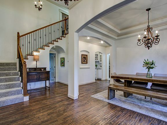 Walk to Jenks NW Elem! Gorgeous ZOOM ready office! Contemporary 3 bed/office/dining down w/ inviting patio & fireplace on Greenbelt. Two bed/bonus/full bath up. Roof & HVAC 2018. New carpet. Neighborhood pool, clubhouse, ponds, trails, & court family fun!