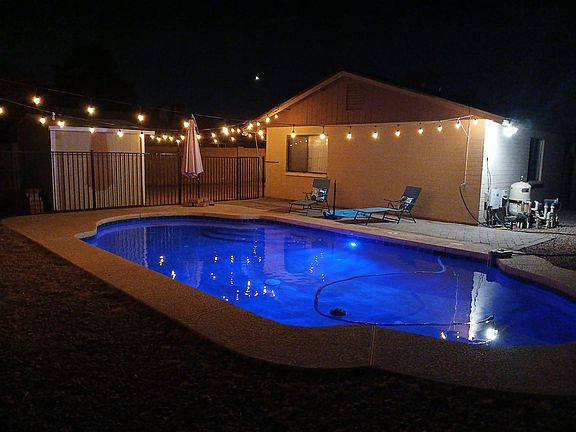 Welcome to your perfect staycation! This fully furnished 3-bedroom, 2-bathroom home features a private pool and has been recently renovated based on valuable feedback from our tenants over the past four years. Key Features: Pet-Friendly: Your furry companions are welcome here! Outdoor Oasis: Unwind in a spacious backyard with a newly renovated pool, ideal for relaxation and fun. Prime Location: Nestled in a safe, family-friendly neighborhood, you'll enjoy peace and convenience. Easy Commuting: Effortless access to major freeways (60 and 87) makes commuting throughout the valley a breeze. Nearby Amenities: Shop, dine, and play with shopping malls, parks, and a variety of restaurants just minutes away. Entertainment Galore: Enjoy two Smart TVs (one in the master bedroom and one in the living room), along with floats, games, cards, barbecue equipment, and more because we love keeping things fresh! Take a Virtual Tour: Experience the property from the comfort of your home: Property Walkthrough . We pride ourselves on consistently receiving 5-star ratings from FF, VRB, and Airbnb guests, with many praising our accommodating nature and commitment to ensuring a comfortable stay. We're always eager to enhance your experience! If you have any suggestions or requests that fit within our budget, please let us know. Your comfort and satisfaction are our top priorities. Our house is a fully furnished house and prefer to short to mid-term lease from 1 month upto 6 month. Things to Know: Entire House: Enjoy complete privacy during your stay. Free WiFi: Stay connected throughout your visit. Smart TV: Stream your favorites on Prime and Netflix. Alexa: Play music and control the environment with voice commands. Keyless Entry: Access the house with a code provided at check-in. Fully Equipped Kitchen: Includes a dishwasher, stove, fridge with ice maker, and more. Central Air Conditioning: Stay cool and comfortable. Washer and Dryer: Laundry made easy with detergent and dryer sheets provided. Pool: Enjoy the spacious diving pool, complete with toys and floaties. Board Games: A selection for family fun. Outdoor Grills: Both gas and charcoal options available. Backyard Games: Perfect for outdoor entertainment. Quiet Neighborhood: Safe and peaceful surroundings. Living Room: 55-Inch Smart TV: Enjoy streaming options and local channels (no cable). Alexa: Play music, adjust the temperature, and more just say, "Hey Alexa." Cozy Extras: Extra blankets are available for your comfort. Kitchen & Dining: Fully Stocked Kitchen: Includes dishes, silverware, pots, pans, and more for you to use for cooking. Dining Area: Seats six comfortably. Appliances: Built-in microwave, stovetop with oven, fridge with ice maker, coffee maker, toaster, and blender. Purified Water: For cooking and drinking. Laundry: Washer and Dryer: Detergent and dryer sheets provided. Safety Supplies: First aid kit and fire extinguisher available. Bathrooms: Two Full Bathrooms: One in the hallway and another in the master bedroom. Amenities: Hairdryer, luxury towels, shampoo, conditioner, and body wash. Bathtub & Shower: Features a rain shower head. 3 Bedrooms: Master Bedroom: King-sized bed, comfy cotton sheets, walk-in closet, and a newly installed TV. 2 Guest Bedrooms: One with a queen bed and another with a queen bed, both with ample storage. Extras Closet: Pool Toys & Towels: Everything you need for poolside fun. Board Games: For indoor entertainment. Outdoor Accessories: Grills & Lounge Chairs: Enjoy outdoor cooking and relaxation. Water Misters: Keep cool in the front yard. Outdoor Games: Lots of fun options available. Pet Policy: Dog-Friendly: We welcome house-trained dogs up to 50 lbs. for a pet fee of $150 (to be requested separately after booking). Please note: No pit bulls allowed. Pool Guidelines: Non-Heated Pool: Perfect for refreshing dips. Safety Measures: A pool fence is installed for child safety. Always supervise children and avoid running near the pool. Maintenance: DO NOT DISCONNECT POOL EQUIPMENT OR HOSE. Clean up pool toys after use. Pool Liability Addendum: When booking with us you are signing an agreement that you are aware of and assume the risk for yourself, any children, and for all guests or invitees during your stay. We are not responsible for any accidents caused by guests and all individuals in the Guest party. You also agree to indemnify and hold harmless us from any liability resulting from harm or injury caused by Guest and all individuals in Guest's party using the pool and/or any equipment.