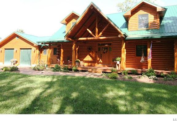 Immaculate lodge style log cabin on +-86 acres including 15 tillable acres & river frontage!!! Too many features to list them all but a few are as follows: secluded yet close to Hwy 44 and 30, fencing and cross fencing, barn, metal roof, 30x30 attached heated garage, massive covered front porch, extensive landscaping, freshly sealed exterior, wood furnace, & heated exposed aggregate drive and walkways. Inside you'll find gleaming hickory flooring, custom kitchen with glass front pecan cabinets & stainless steel appliances, recessed lighting, coffered ceilings, massive vaulted great room, lofted area, covered deck, main floor laundry, main floor master suite, master luxury bath with claw foot tub and ceramic tile shower, 9 ft. ceilings on main and lower level, pex plumbing with manifolds for radiant heat in basement, garage floor & walkways, high efficiency HVAC, custom fans & fixtures,& walk-in closets! SOOO much more. PLEASE VIEW THE PICTURES!! Several acres of marketable timber!