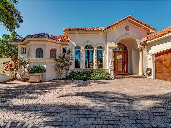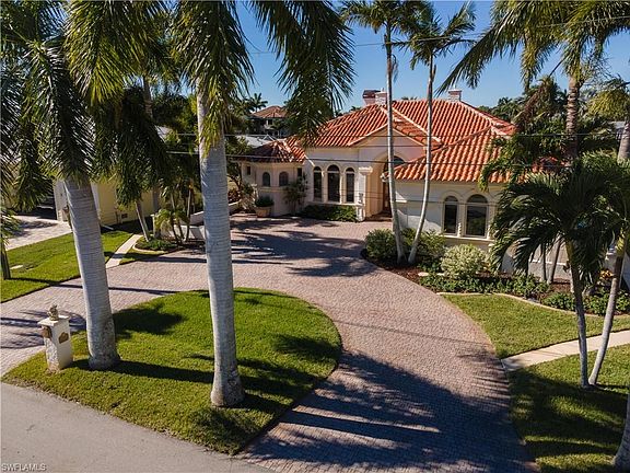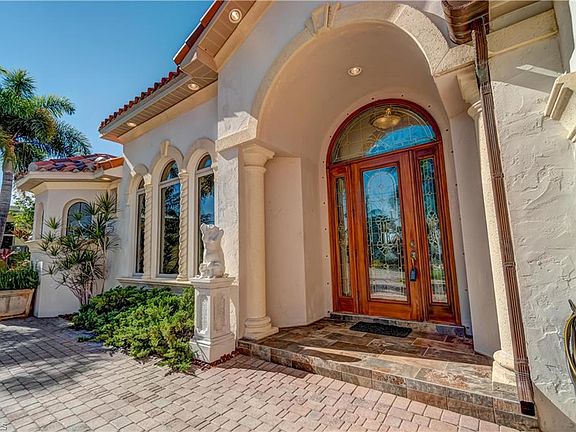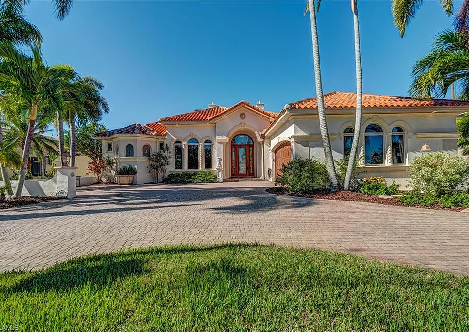 Explore this Gorgeous Mediterranean Beauty located directly on the Bimini Canal, over 200' Wide, Sailboat Access, No Bridges, Locks & just mins to the River! This Custom Designed Home incorporates all the Classic Mediterranean Elements, Creamy Exterior Stucco Finish, Impressive Front Entry Doors, Imported Clay Tile Roof, & Graceful Arches w/Intricate Columns. A Stunning Interior w/Custom Finishes... 8' Stained Wood Doors & Trim, Soaring Tray Ceilings, Crown Molding, Double Sided Fireplace, & Custom Built Ins. Kitchen Designed for Gourmet Cooking, features High-End SS Sub-Zero, Thermador, & Wolf Appliances, Beautiful Wood Cabinets w/Granite Counters. At just under 2300 Sq Ft of Living Space, this Great Room Design Feels & Lives like a much Larger Home. Floor Plan features 3 Bedrooms, 2 baths + Den, Sliding Glass Doors open to an Amazing Outdoor Space, Ideal for entertaining Family & Friends. Gas Heated Pool & Spa creates the perfect Oasis to relax & unwind. Boaters will enjoy the Quick Gulf Access, there's also a Wood Dock w/Authentic FL Chickee Hut & Boat Lift, the Perfect Spot to watch the Annual Christmas Boat Parade & our Spectacular SWFL Sunsets. Hurry before this one is GONE!