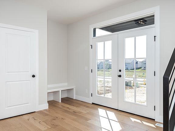 Beautiful New Construction with brick front and 8ft entry front door. Black exterior windows and white interior. Open plan with 18ft ceiling in the Entry and Living Room. White Oak hardwood floors on the main. White Kitchen cabinets, white oak center island eating bar, quartz countertops, tiled backsplash, stainless appliances and walk in pantry. Main floor Laundry/Mudroom with built in lockers. First floor Master suite with walk in tile surround shower, freestanding tub, 2 sink vanity and walk in closet. Open staircase with metal railings up to Loft, 3 large Bedrooms, Full Bath with a 2 sink vanity. Basement has a large family Room, Bedroom, full Bath and great storage space. Fully sodded large yard and landscaped around entry. Days on market reflect start of construction.