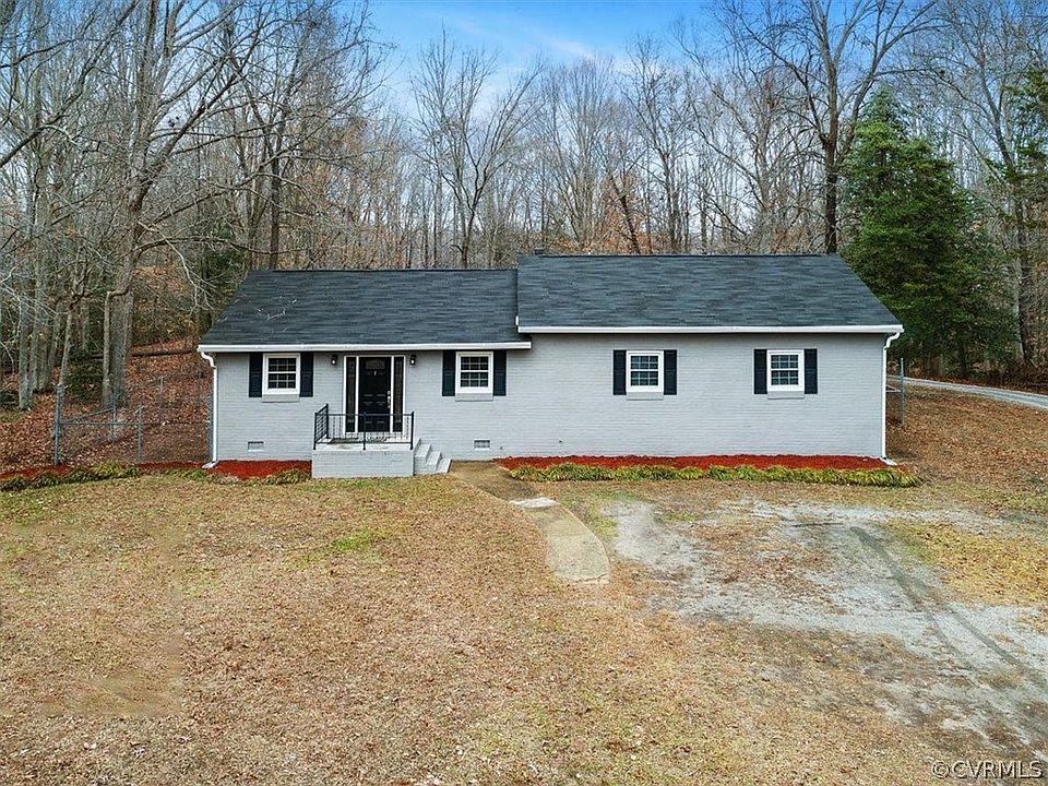 Welcome to beautiful New Kent County! This charming 3 bedroom, 2 bath ranch style home on 2 acres is a must see! Enjoy spacious one-level living with 1680 square feet of living space. Vinyl plank floors run throughout the oversized family room and large kitchen with ample cabinet space and double pantry for extra storage. The large laundry room with shelving is off the kitchen and leads to private, fenced back yard. Down the hallway you will find a full updated hall bath with vinyl plank flooring, and 3 bedrooms including the huge primary bedroom. Primary bedroom has walk-in closet, access to the back yard, and an updated private bath with vinyl plank flooring and shower with tile surround. Exterior features include new gutters and downspouts, new roof in 2020, and detached dual sided shed with electricity. One side of shed is climate controlled. House is wired for generator. You will love the privacy of country living on this large 2 acre lot! Home is located less than 10 minutes from New Kent Winery and close to the Hanover County line. Schedule your showing today!