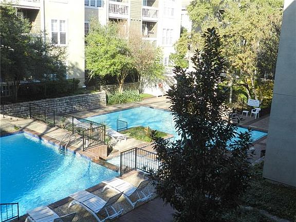 Updated Modern Condo near Addison Entertainment District* Open Floor plan* 2-2-1 Covered parking (YYYY), 1 open parking*2 Elevators on property* Large kitchen with glass top range* Stainless Steel Appliances*Granite Counter-tops* Kitchen overlooks multiple pools with fountains and lights* Hardwood throughout*Updated tile in both bathrooms*Large fireplace*Seamless shower in Master bath with spray shower & double sinks on granite counters*Ceiling fans*Walk-in closets*. No Fha or VA loans allowed per HOA. *SS REFRIGERATOR, WASHER DRYER REMAIN*NEW HEATING UNIT. Located on 2nd floor with pool views.