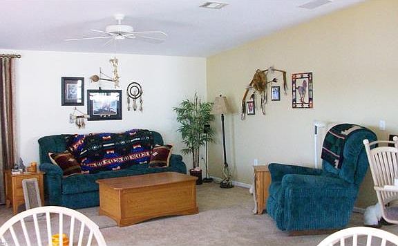 Exceptional newer 2 bdrm plus office/den or 3rd bedroom with over 1500 sq ft of living area. Very open with plenty of light. NEW steel roof just since December, 2017 with 30 year warranty, NEW lanai, carport plus walkway..Home has 6" walls with couple of bedrooms having plantation shutters....Lanai built with 2X10 bracings up to most current hurricane code. Kitchen has island with cooktop plus a wall oven and microwave....Double sinks with a garbage disposal, and a dishwasher..Kitchen and dining room have ceramic tile, carpeting throughout bedrooms..Large size pantry and plenty of cabinets. Separate laundry room with built-in cabinets and shelving..Wider handicap accessible hallway. Both baths have walk-in showers and skylights; master having extra closet....Central air with four(4) additional ceiling fans for extra comfort.. More storage to rear of carport and wider area to park vehicles plus coverage for two....