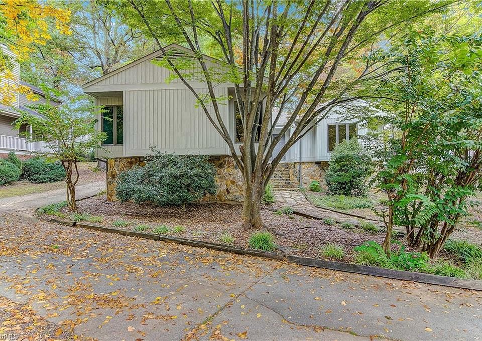 Ready to move into, this one-level home is just minutes from shopping, dining & major traffic arteries. In true contemporary style, the kitchen has an island w/curved wall, cabinets w/clean lines & granite countertops; 6-burner gas cooktop. Kitchen open to dining & living areas. A double-sided, stone fireplace splits the great room from the office/den; in this space, you'll find a vaulted ceiling & wall of windows. There is a 2nd wall of windows, vaulted ceiling & roughhewn beams in the breakfast area. Hardwoods flow throughout the living spaces, hallways & primary suite. The primary suite has a spacious bedroom w/vaulted ceiling & details that highlight the contemporary style of the home, a generous walk-in closet & private bath w/2 sinks, jetted tub & shower. There is a 2nd suite w/private bath & 2 additional bedrooms served by a 3rd bath. The multi-tiered deck & fully enclosed back yard offers great space for living, dining & relaxing outdoors. 2-car garage w/workshop/storage area.