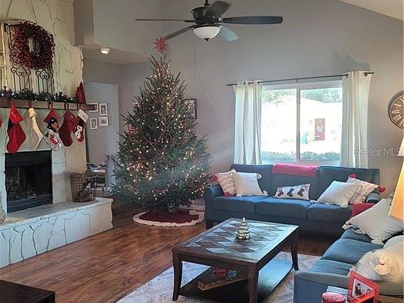 MULTI-FAMILY, MINI FARM, IN TOWN RETREAT... all of the above... AND... NO DEED RESTRICTIONS, NO HOA, NO CDD FEES all on almost 2 acres. The main house is 3 beds/3 baths (downstairs bath includes a sauna and leads to the pool), updated kitchen, living room, family room, dining room/sitting nook in front of the see through fireplace and a cozy gaming room. The oversized garage has been partially converted into a large 4th bedroom. The generous covered lanai looks out onto the vast pool, fenced back yard, guest house and barn. The guest house is a 1 bed/2 bath with a den/office, living room, kitchen and dinette space perfect for guests, extended family or even a rental. The attached "barn" boasts a more than ample workshop, 1 car garage, a loft and a couple of bonus rooms... a huge game room and a movie room with a small kitchenette perfect for popping popcorn, chilling sodas, keeping candy bars and snacks. An oversized chicken coup and expansive back yard perfect for horses or other livestock, round out this pastoral home and setting. This is a rare opportunity to live on "in town" acreage while enjoying the freedom of country living. Priced to sell to the family who wants it all!