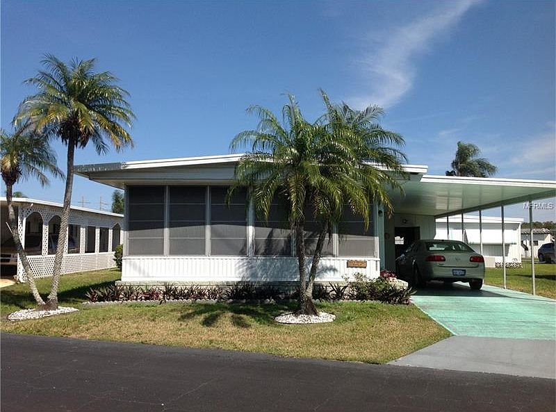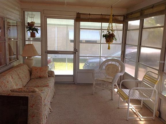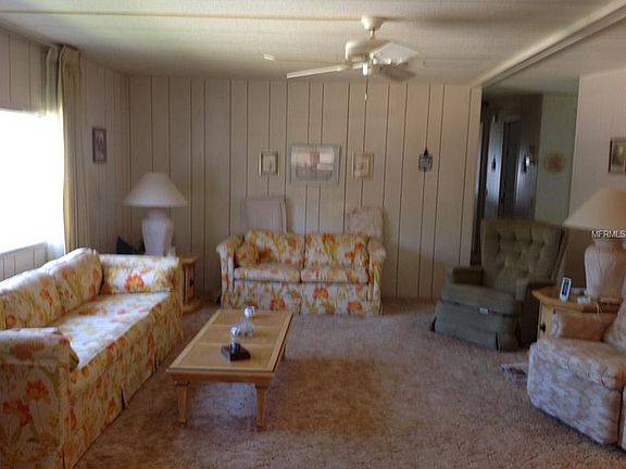 Chateau Village is a 55+ community with lots of actives. Come enjoy the life style this area affords you. Double wide mobile home with two bedroom, two baths completely furnished, just bring your clothes. Located on a quiet street. Not in Pet Section. Low maintenance fees of $140/month includes: water, sewer, trash, lawn mowing, manager, heated community pool, and shuffle board . Located near shopping, banks, restaurants, and only minutes to the gulf beaches. Owner providing a One Year Home Warranty for Buyer.