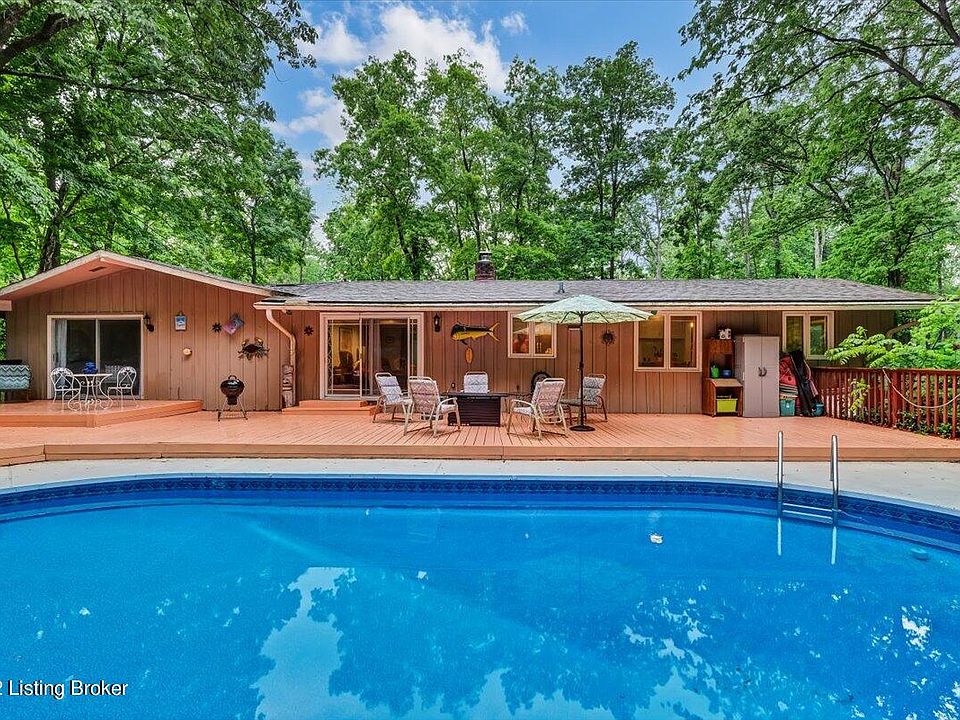 Back on the market with updates! There is new septic system installed with a 2 year service agreement; updated light fixtures, update tile in the bathroom, new ridge vent for the roof and much more. This lifestyle home makes your home the center of family living. Nestled on a quiet winding foliage-clad street in LaGrange, just minutes from the freeway, there's no need to find leisure or entertainment anywhere else. The sparkling in-ground pool with removable custom made Baby-Loc fence and 53' deck is set in a tree-lined yard with plenty of room for other outdoor activities as well. There are 5 bedrooms and 3 full baths. The kitchen has been loved with updates such as new butcher-block counters, a matched set of stainless appliances and glass tile backsplash. The winter-cozy fireplace is a walk-around separation from living room to kitchen. Perfect as a mother-in-law suite, the walk-out basement with side entry provides privacy - could even be a teen's haven. A lazy stream separates your neighbors from you. With your own furnishings and additional updates, this privately-set home will provide years of happiness.