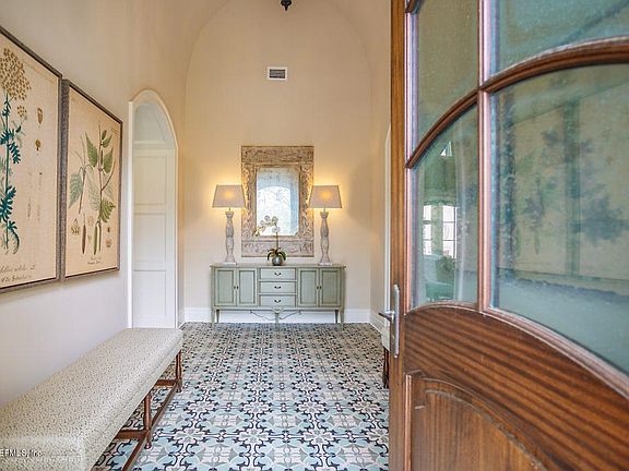 Absolutely dreamy waterfront home located in one of Jacksonville's premiere neighborhoods - Pablo Creek Reserve - a gated community! This exquisite single story custom home was built by Architectural Classics in 2016 with fabulous interior design by Lisa Gielincki. No expense was spared in creating this masterpiece. Dramatic Vaulted beamed ceilings punctuate the main living room along with arched doorways & gleaming hardwood floors. A gourmet kitchen and spa like master bedroom retreat along with private office are other wonderful features. Enjoy coffee in the sunny breakfast room and an afternoon swim in the shimmering waterfront pool. The covered summer kitchen is the perfect place to entertain with double sided fireplace and quick access to the hot tub. Minutes from Mayo Hospital-Hurry!