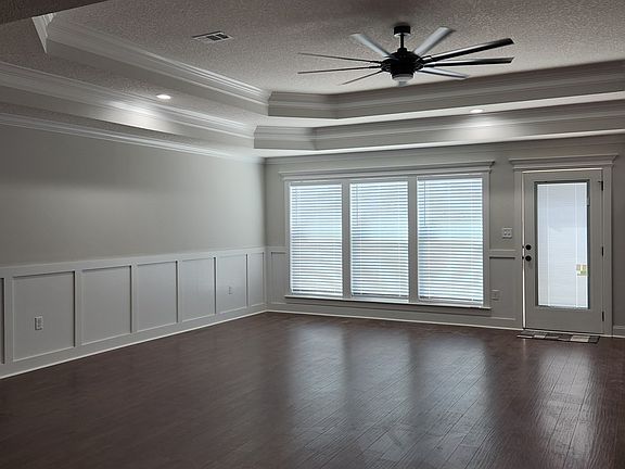 This is a beautiful 4 bedroom 2.5 bath home. Open and split floor plan. Living room with double trey ceiling. Stainless steel appliances. Granite counter tops. Large kitchen island. Pantry. Hardwood flooring. Tile in restrooms and laundry. Crown molding throughout. Walk in tiled shower with glass door and separate soaking tub in Master bath. Faux wood blinds. 14 x 16 concrete back patio. Over 1/2 acre corner lot. Access to lake. Fenced in back yard.