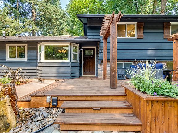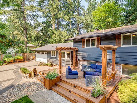 MOTIVATED SELLER. Beautifully updated home on extremely private 0.35 acre lot. Open floor plan on main level with hardwood flooring. Kitchen with SS Frigidaire appliances, quartz counters and large island. Wood burning fireplace in the living room. Split level with three bedrooms and one bathroom upstairs. Large primary suite with fireplace and remodeled bathroom downstairs with French doors that open to yard. Oversized above ground swim spa with deck area. Large tool shed alongside garage and 10X15 structure with power and heat behind garage.