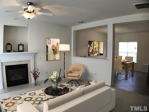 Open plan. 3BR, 2.5 BA with freshly painted interior. Fireplace in living room. Kitchen with expansive counter space /bar, black appliances. Refrigerator conveys. Dining area adjacent to kitchen. Master bath has walk-in closet, garden tub for soaking and separate shower. 2nd floor loft area - ideal for office/desk space. 2 car garage. Walk-in attic storage. Fenced yard and patio. Convenient location. Approximately 15 minute drive to new Amazon Flex Warehouse.